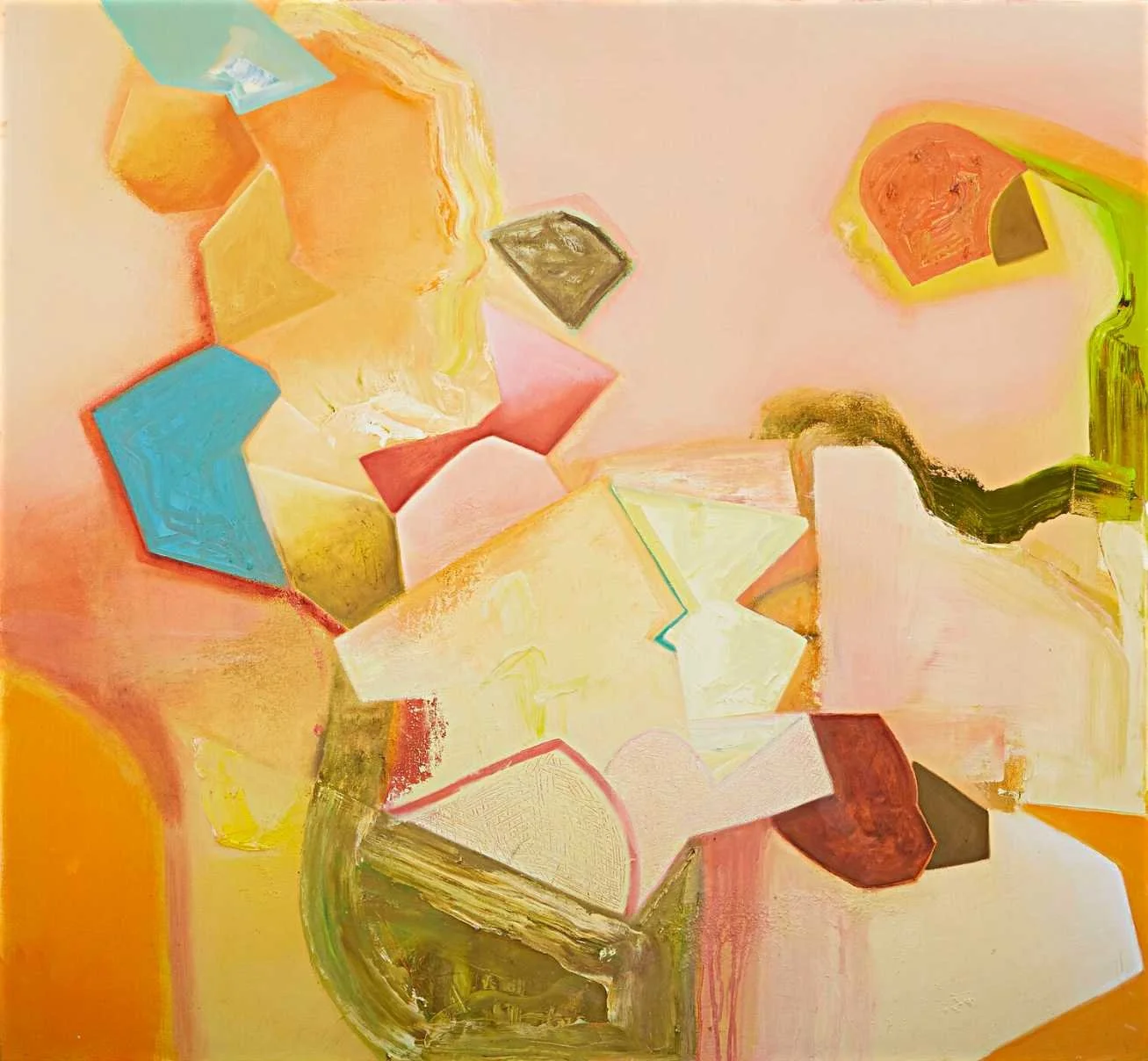 My new Shapes Series is rather playful. It has interesting, spontaneous shapes and beautiful jewel tone colors. Very sculptural paintings In this series and has a 3 dimensional appearance. Pastel colors, green, turquoise, orange. With Shapes, my newest series, paintings contain simpler sculptured shapes derived from memories of my jewelry designing career. Here, vibrant colors define sleek forms and gem-like angles that clarify and contrast with each other and with the flowing, organic forms introduced in Burst. Yet, befitting of their inspirational source, the elegant lines and crystalline planes complement each other in the way that the elements of fine jewelry meld to fashion an exquisite whole.